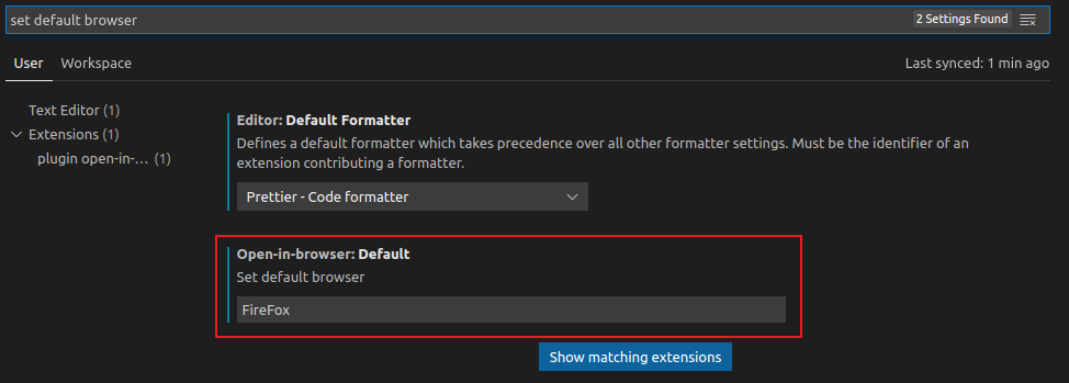2. set default browser와 같은 키워드로 검색하여 원하는 브라우저를 저장한다.